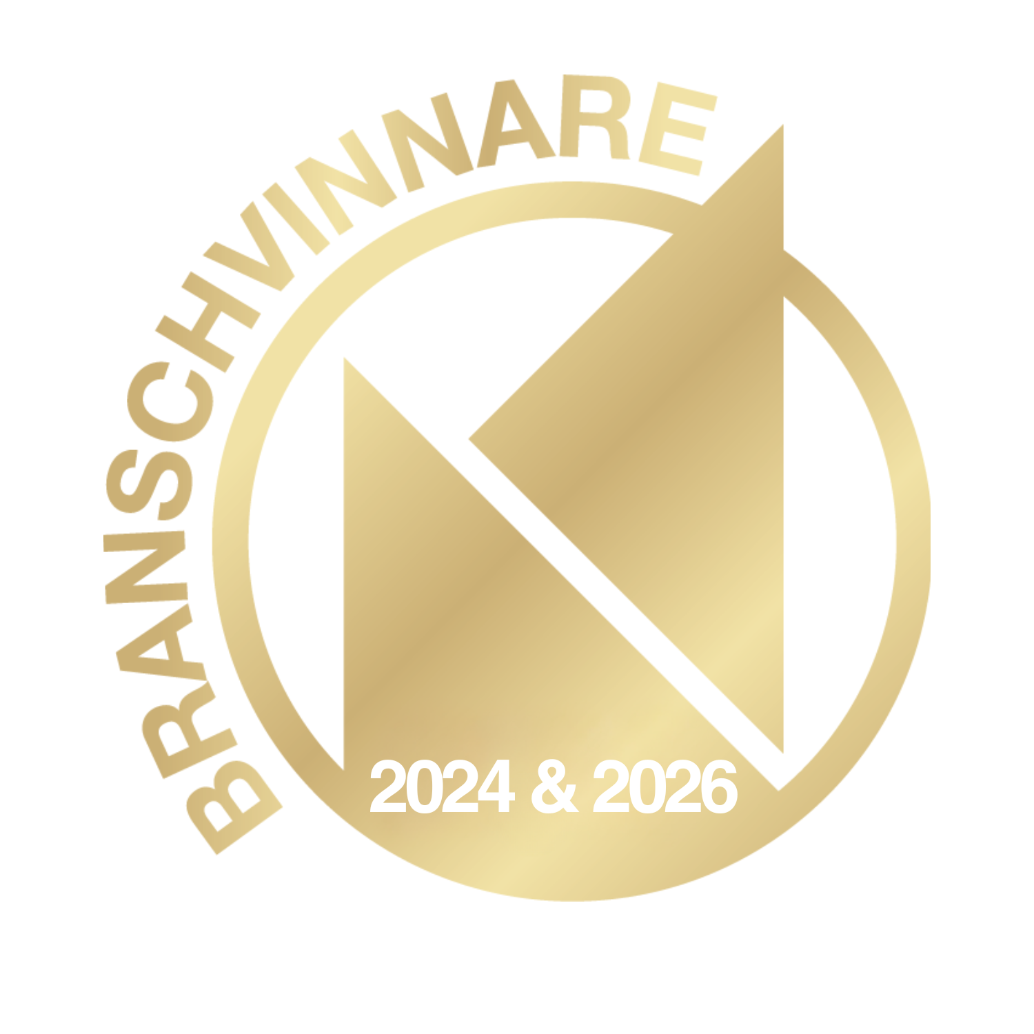 Beviset på vår starka position är att vårt företag fick utmärkelsen Branschvinnare 2026. Vi fick samma utmärkelsen 2024, vilket är ovanligt enligt den utdelande organisationen Branschvinnare i Sverige.