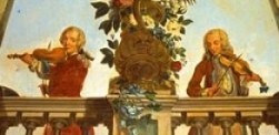 Två av musikanterna i Fågelvikskvartetten, Johan Helmich Roman till vänster och slottsägaren Adam Horn till höger.